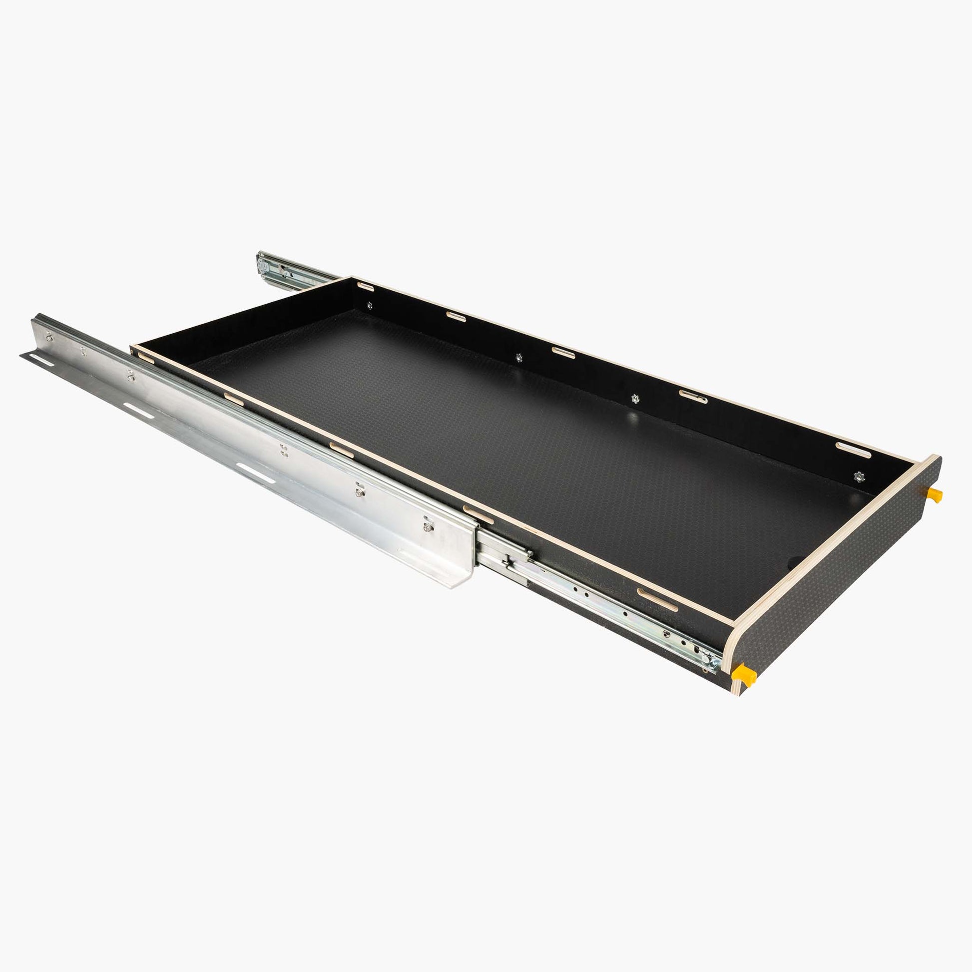 - Slide-out tray with heavy-duty rails.