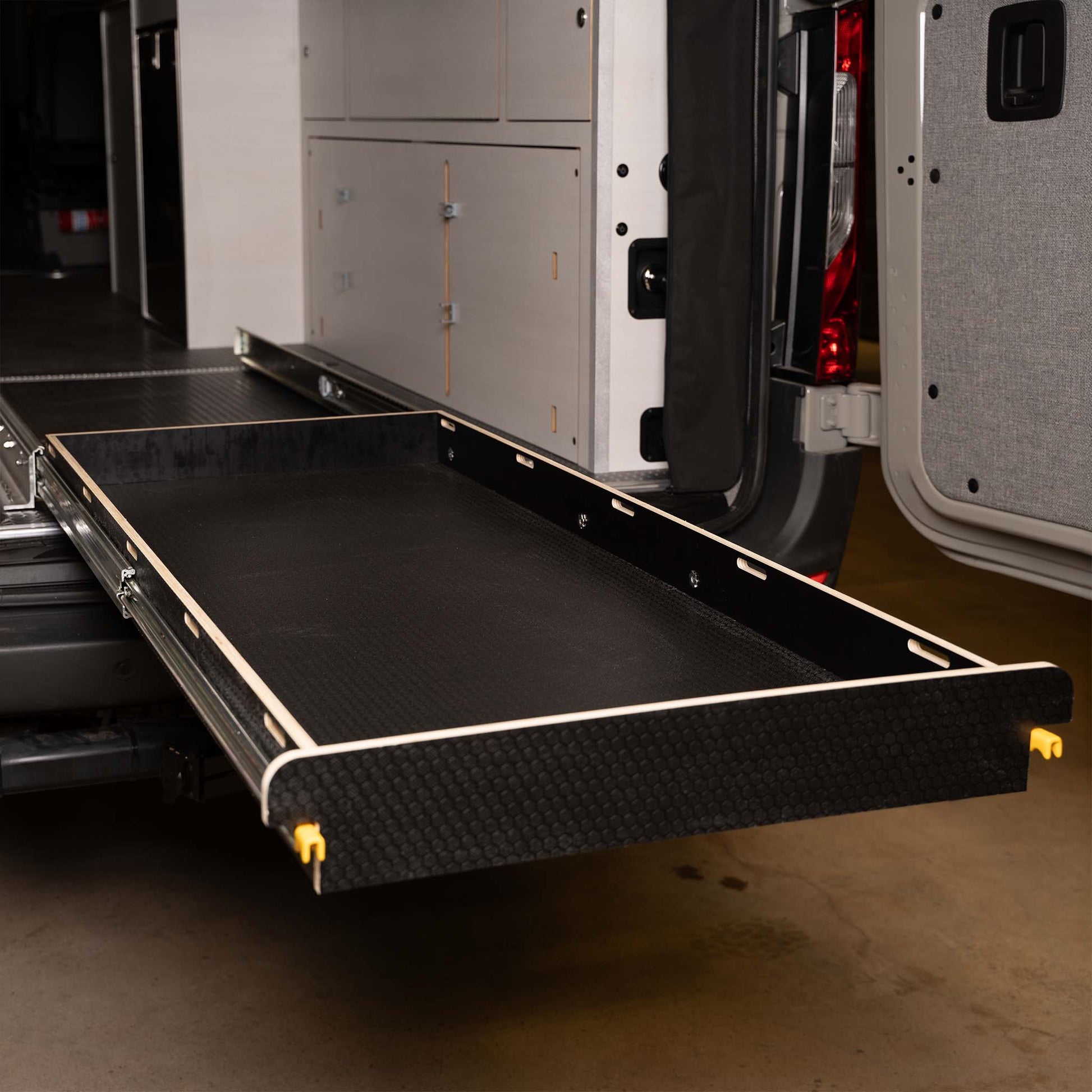 - Tray extends 56" for easy access at the rear of the van.