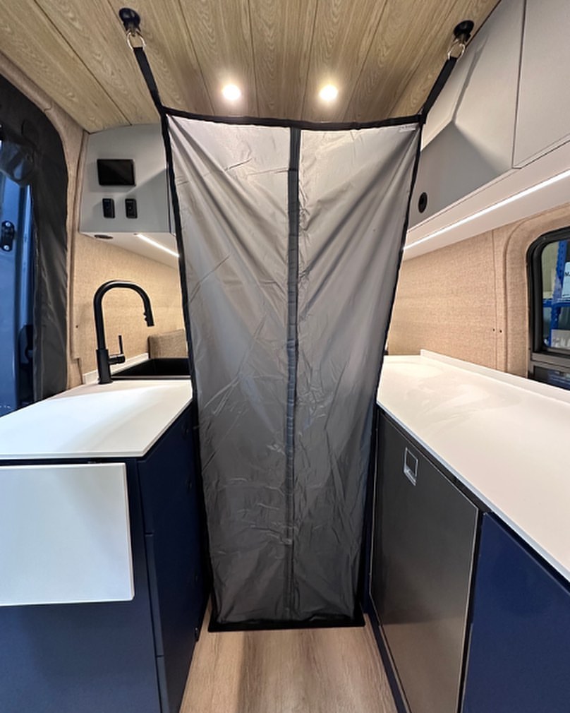 Crafted from magnetic brushed stainless steel, the pan features a recessed drain and cross-break design to direct water toward the included drain fitting. When paired with the optional magnetic waterproof shower curtain, you'll enjoy a fully integrated in-van shower setup that’s both functional and sleek.